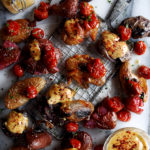 Serve the smoked smashed potatoes with the reserved tomatoes & garlic on top and the tomato confit aioli alongside. Squeeze a touch of lemon juice over the potatoes and garnish with a few extra chives.