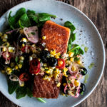 Seared salmon with corn & blueberry salsa…fresh, seasonal, and packed with hidden gems of bold flavor.