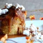 a fun and festive fall dessert: pumpkin cornbread pudding with cinnamon caramel sauce and popcorn