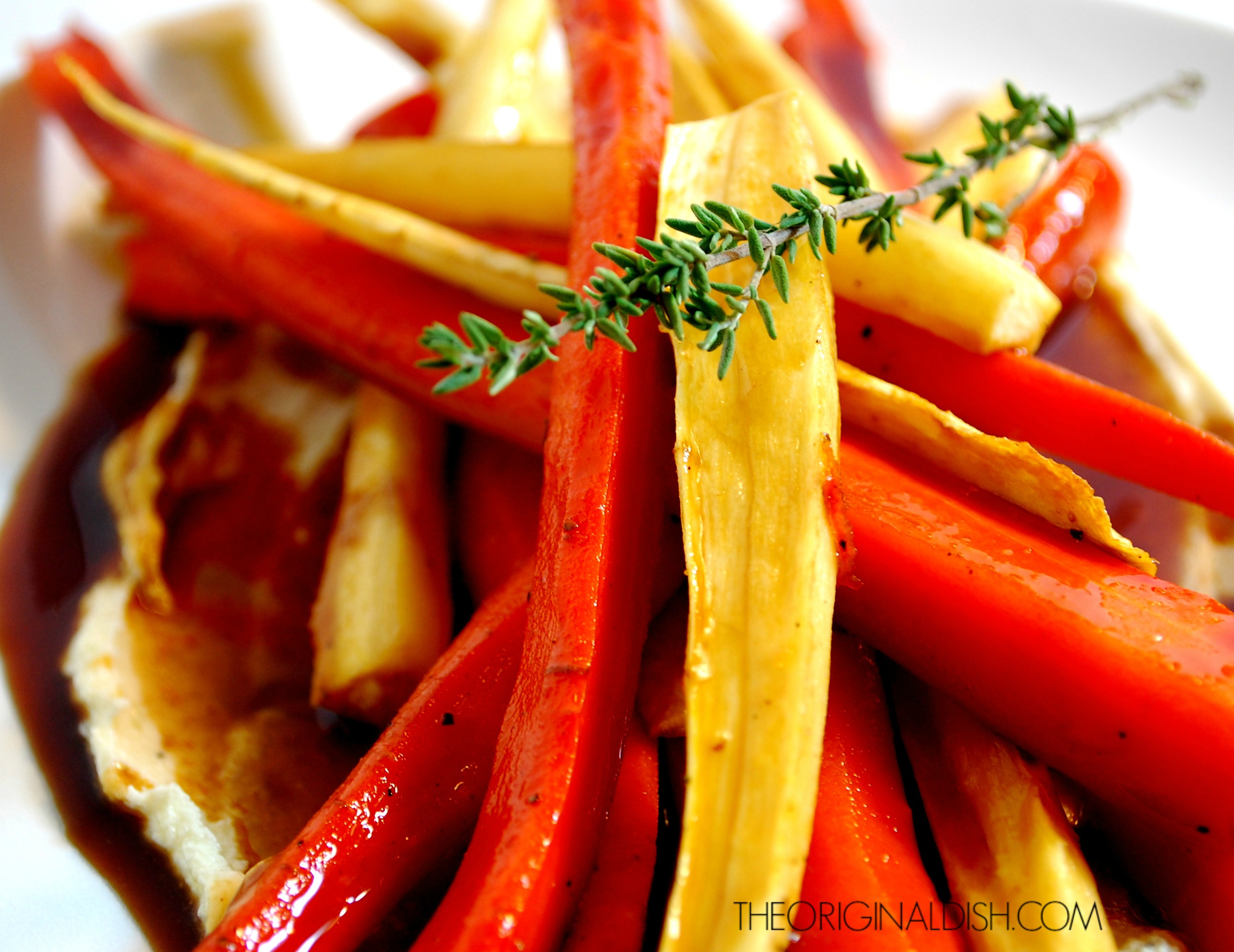 Roasted Carrots & Parsnips with Sweet Apple Glaze and Whipped Goat Cheese