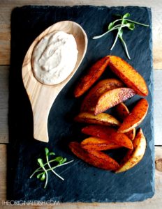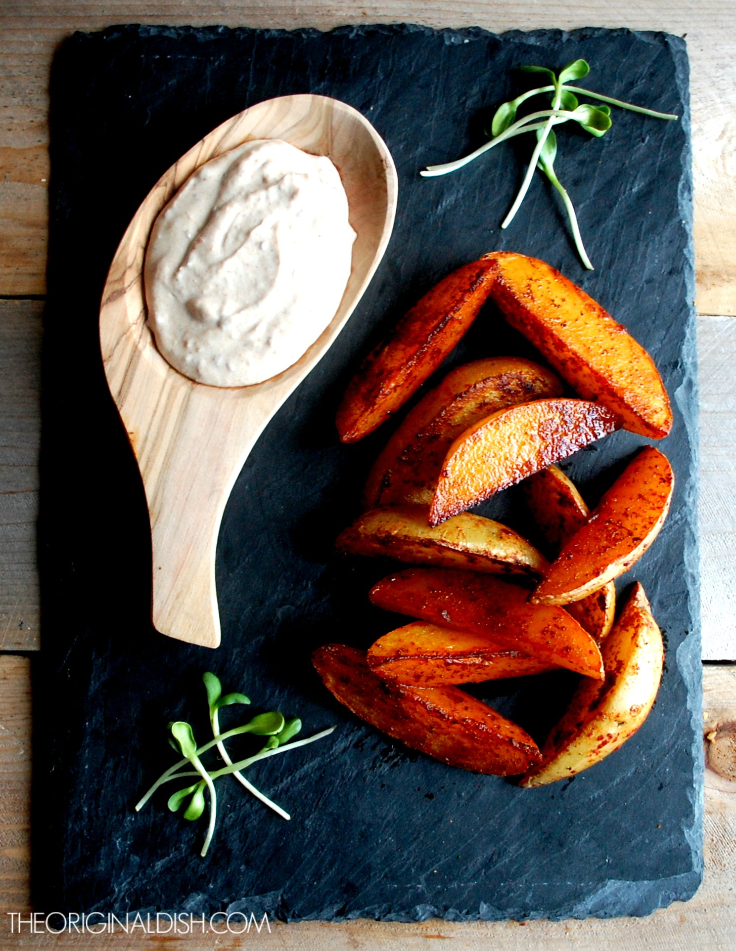 Paprika Seared Potato Wedges with Olive Tapenade & Date Sour Cream