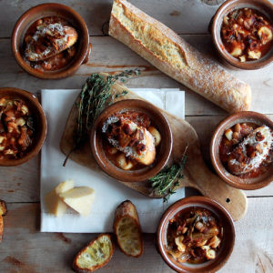 Winter Tortellini Soup with Melted Parmesan Bacon Crostini