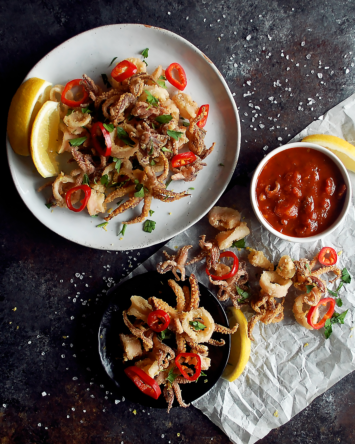 Fried Calamari with Pickled Red Fresno Chili Peppers