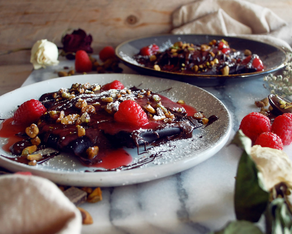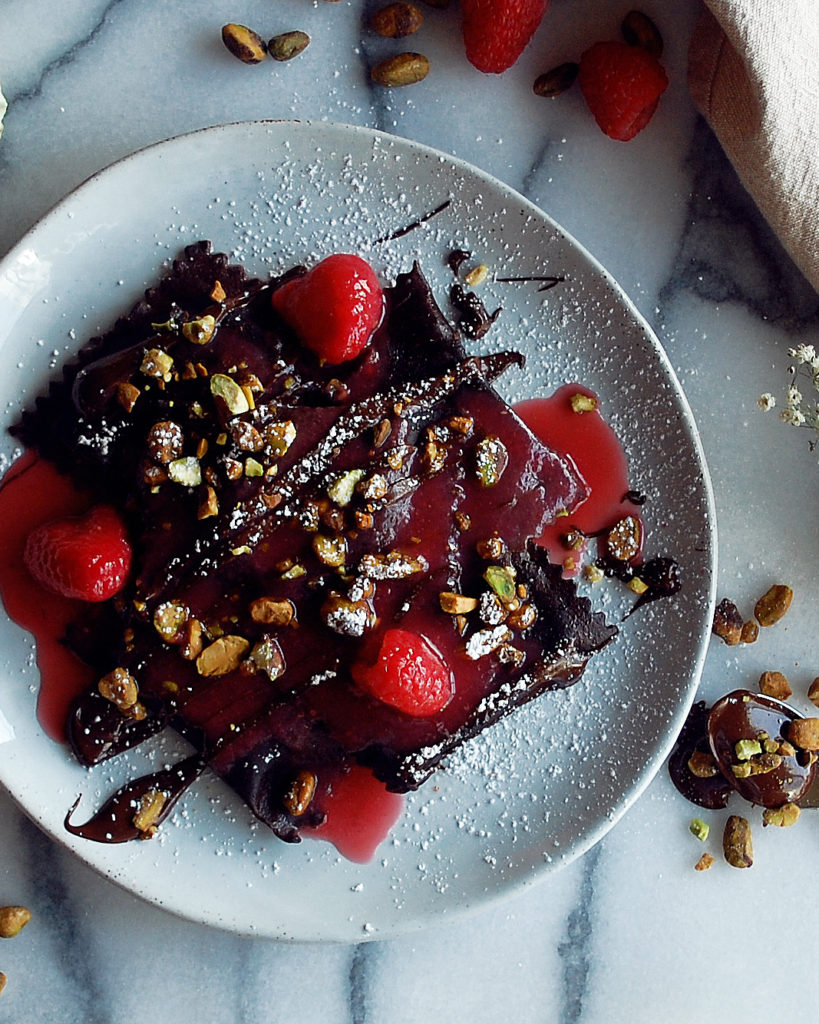Dark chocolate, bright red fruit, luxurious pasta, a decadent dessert….everything you’d typically find when cooking a valentine’s dinner. But this time, the pasta is the sweet finish to the meal, not the savory side dish.