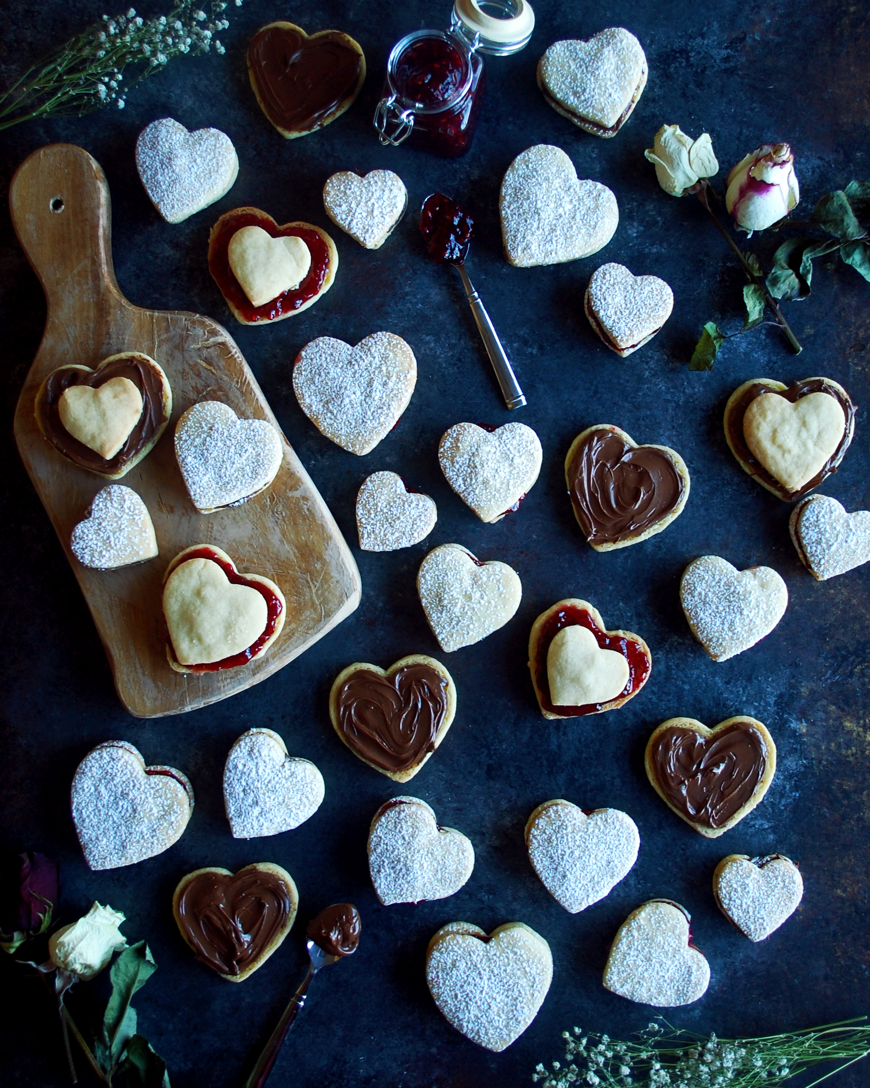 Raspberry & Nutella Almond Shortbread Cookie Sandwiches