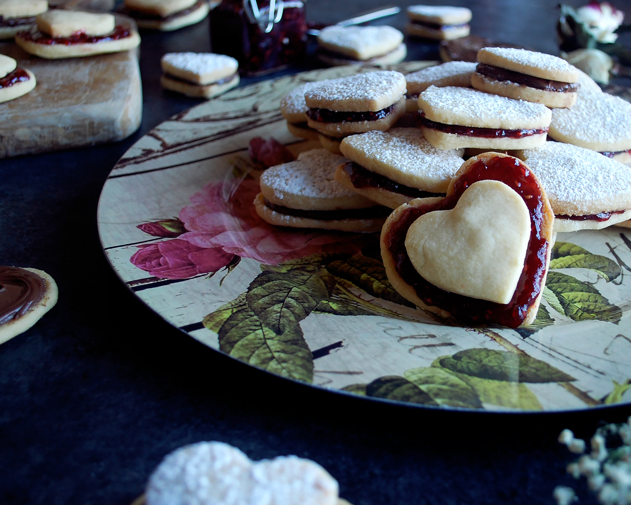 Raspberry & Nutella Almond Shortbread Cookie Sandwiches