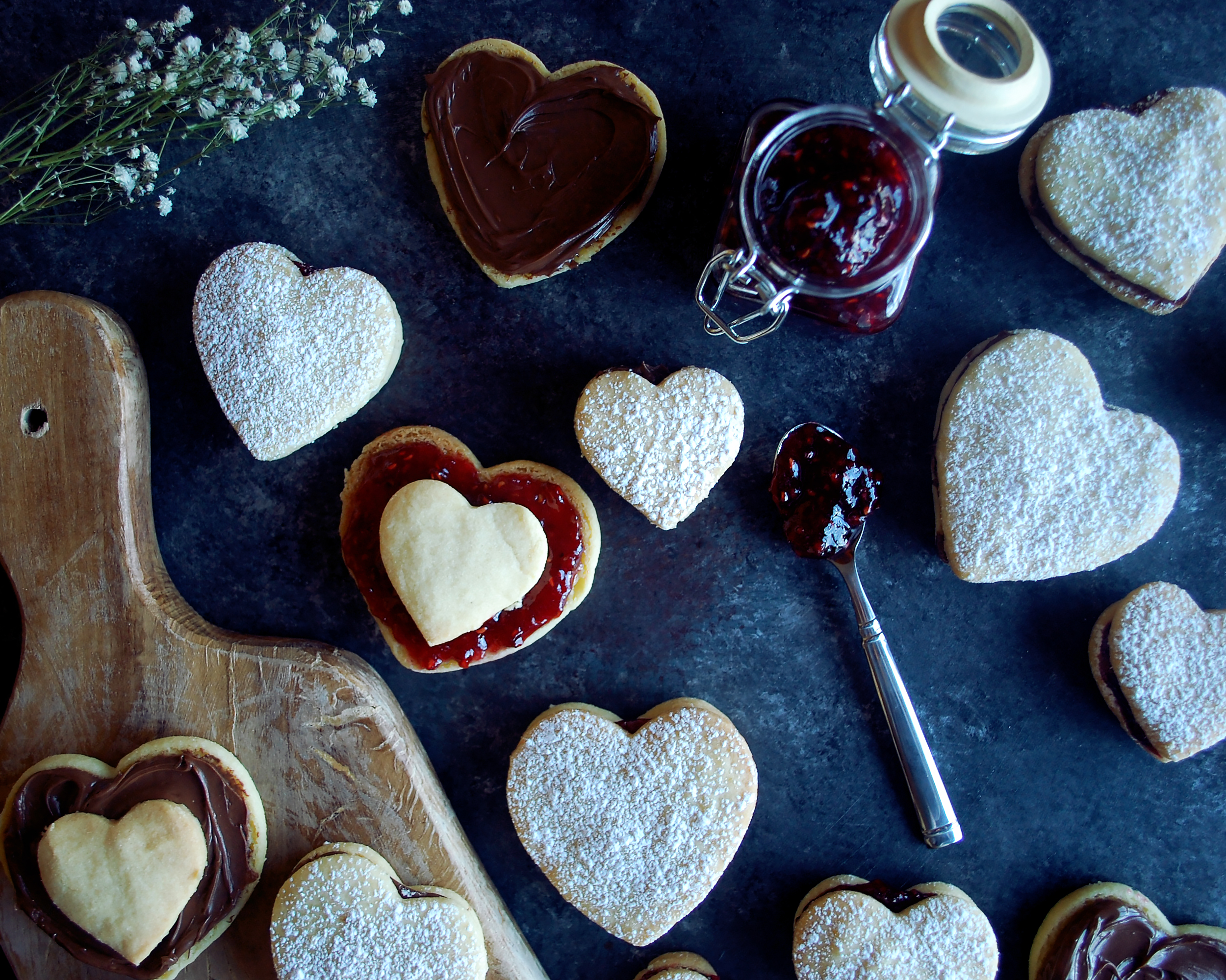 Raspberry & Nutella Almond Shortbread Cookie Sandwiches