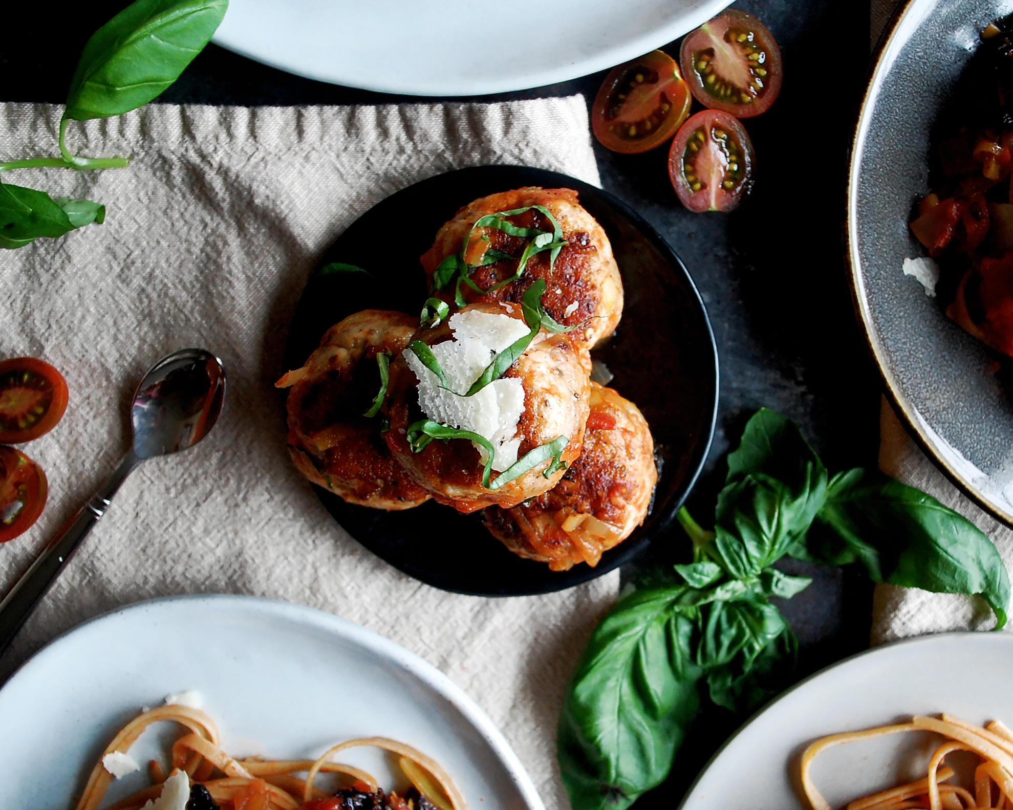 Turkey Meatballs with Chunky Tomato Basil Sauce & Whole Grain Linguine