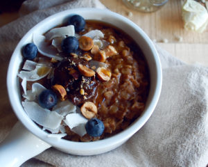 Oats with Homemade Chocolate Hazelnut Butter & Coconut Flakes