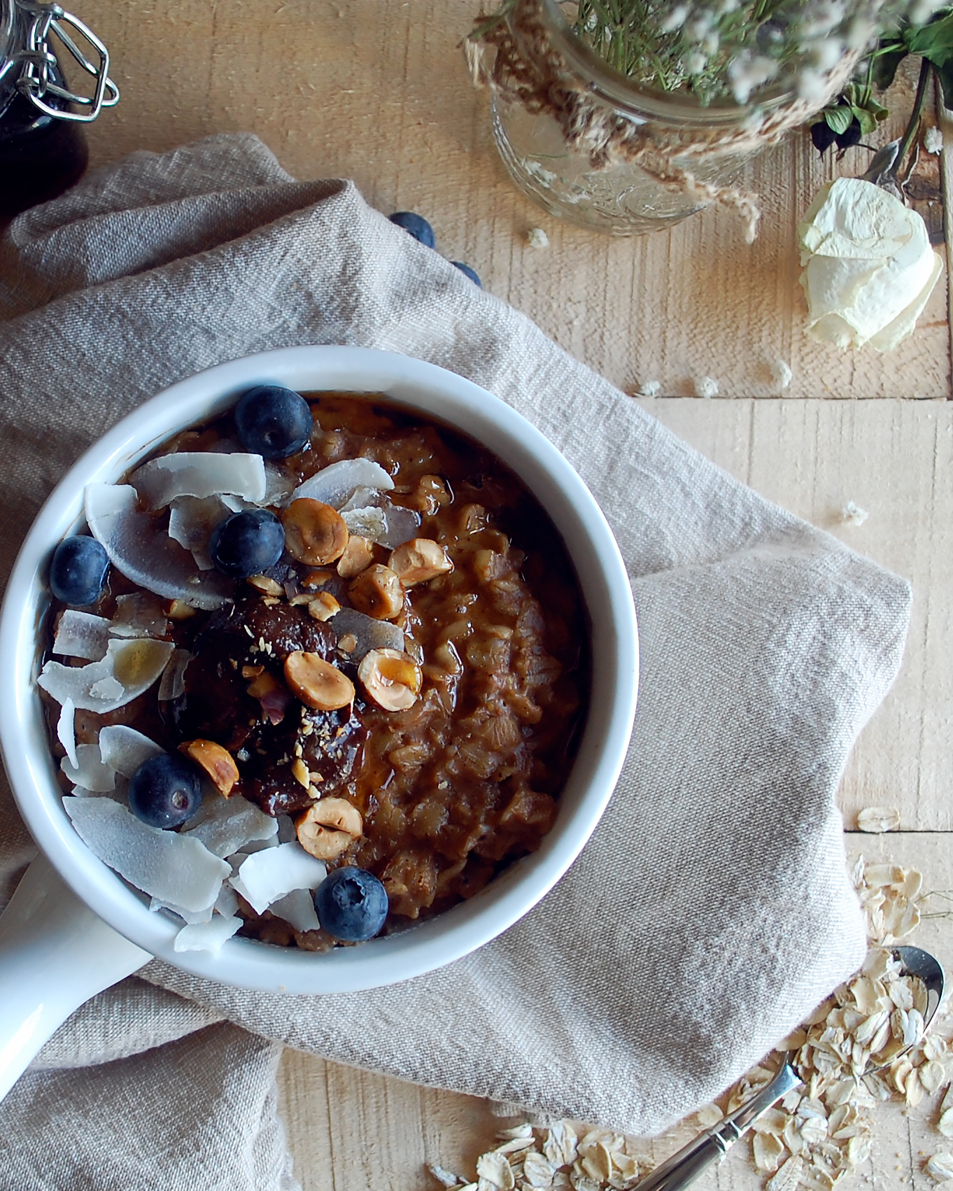 Oats with Homemade Chocolate Hazelnut Butter & Coconut Flakes