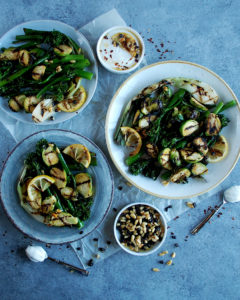 Grilled Broccolini & Brussels with Lemon Yogurt