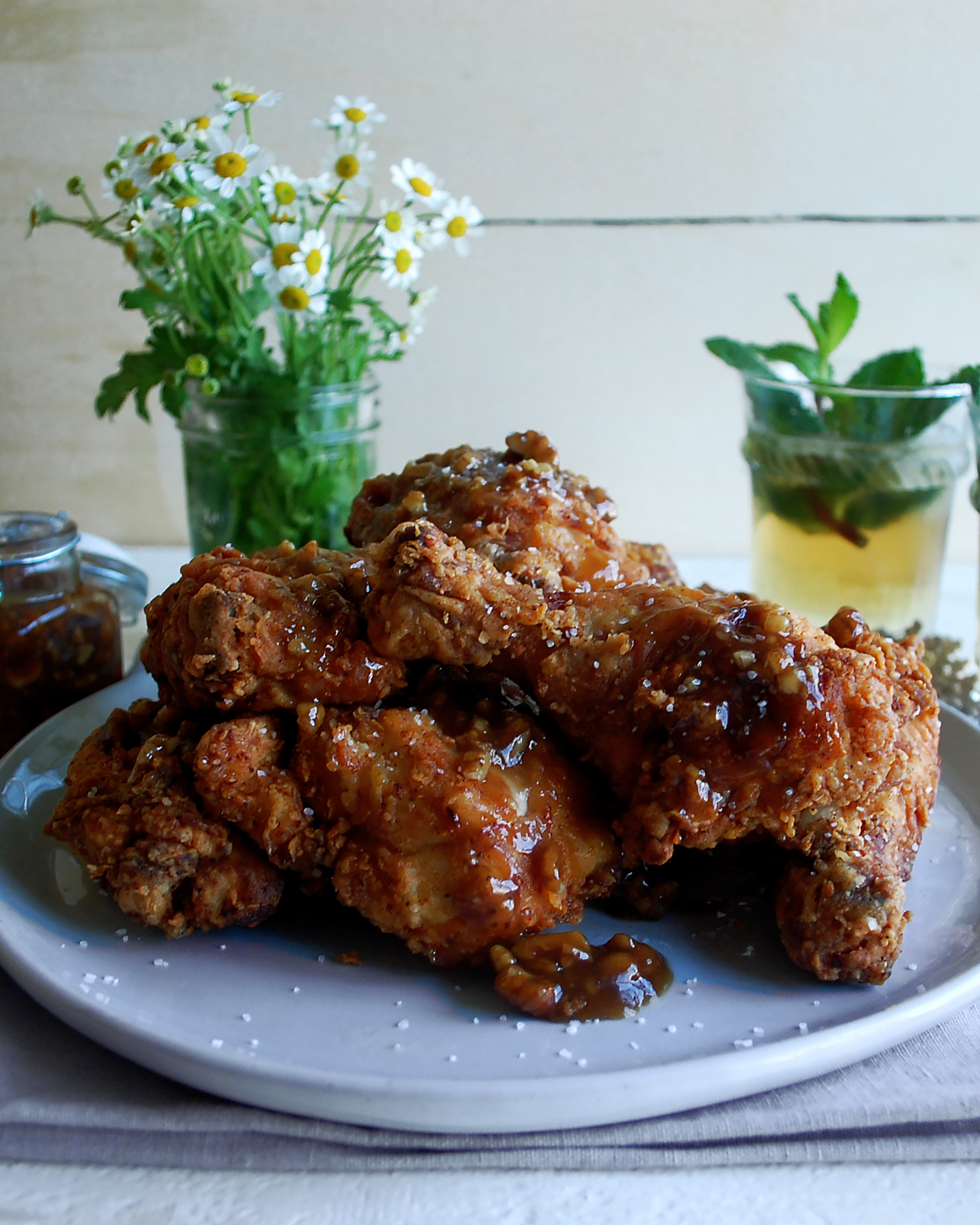 Fried Chicken 2 Posted on May 10, 2017May 17, 2017 by The Original Dish Spicy Buttermilk Fried Chicken with Bourbon Pecan Glaze