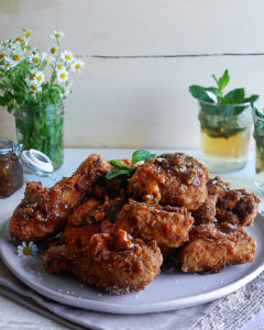Fried Chicken 3 Posted on May 10, 2017May 17, 2017 by The Original Dish Spicy Buttermilk Fried Chicken with Bourbon Pecan Glaze