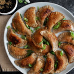 I added lots of toasted sesame seeds to the sauce, and sprinkled more over the finished pot stickers, as well as some sliced scallions. I’d say they turned out to be a pretty fun appetizer to make, and the flavors were spot on! Enjoy!