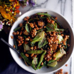 To top it off, because every good vegetable dish needs a crunchy topping, are some sticky honey peanuts. I actually was planning to cook them a different way, but completely forgot about them on the stove. The result? Perfectly coated honey glazed peanuts. What makes them so good even though they’re so simple is the salt. You need lots of salt to bring out all the sweetness.