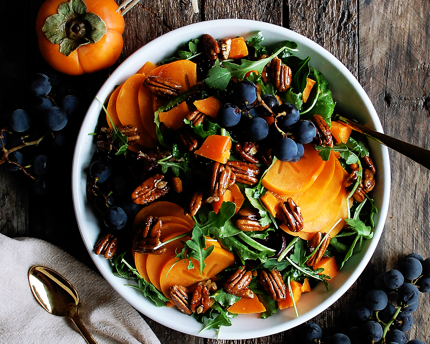 Persimmon & Arugula Salad with Maple Mustard Vinaigrette