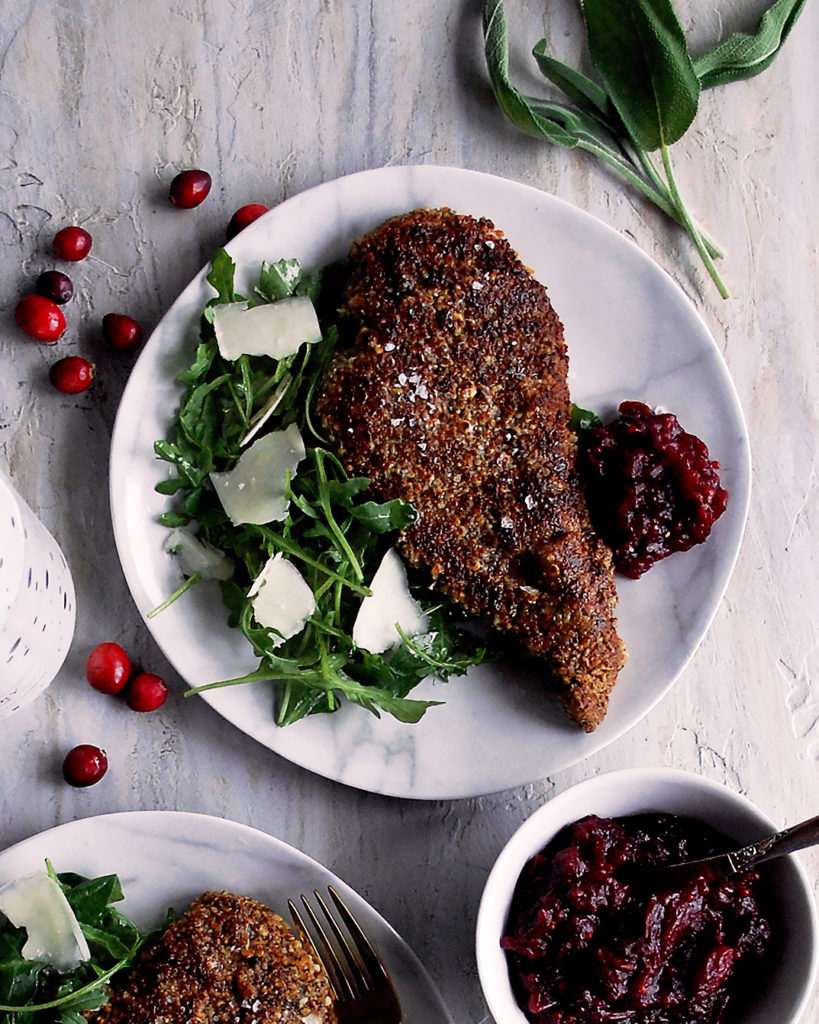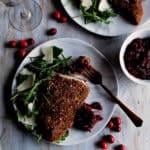 Kicking off this weekend with a simple chicken recipe that is so festive, you’ll want to make it for all your upcoming dinner parties: pecan crusted chicken with cranberry mostarda.