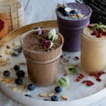 I also love breakfast smoothies when you are working out in the morning, need something in your stomach, but don’t want to be too full. They fill you up without being heavy.