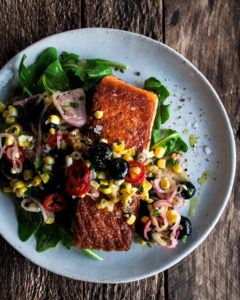 Seared Salmon with Corn & Blueberries Posted on August 30, 2018August 30, 2018 by The Original Dish Seared Salmon with Corn & Blueberries