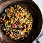 It’s the perfect end of summer side dish to use up all the beautiful corn that’s still out, as well as the figs that are coming into season now. I’ve added lots of different flavors to make this a really intriguing, addictingly good recipe.