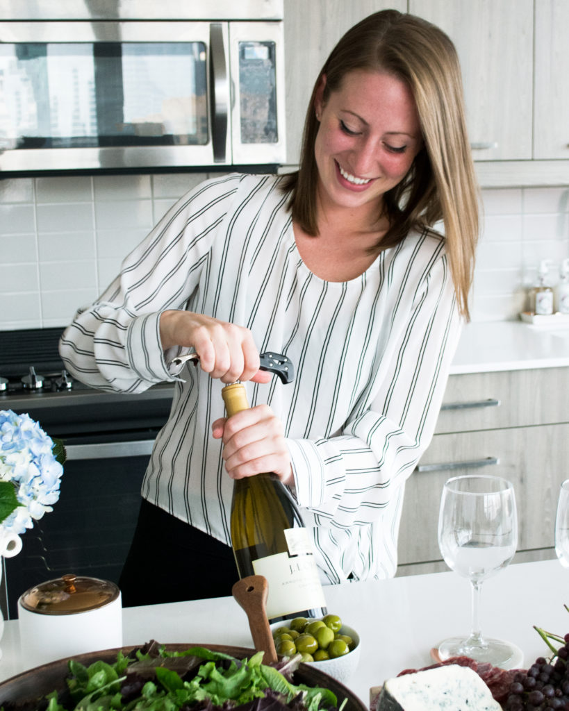 So, I’m giving you a little glimpse at how my roommate and I like to unwind after work, snacking on small bites and sipping on a glass of J. Lohr Estates Riverstone Chardonnay.