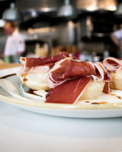 Prosciutto Piadina with Parmesan Fonduta & Balsamic Grapes