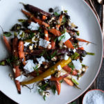 An exciting side dish for spring: roasted carrots with scallion vinaigrette, juicy raisins, salty feta cheese, and crunchy hazelnuts. It’s simple to make, yet bursts with flavor and texture. A great recipe to keep in your back pocket when you need a vegetable dish to add on to any springtime dinner menu!