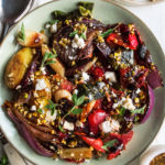a charred mexican salad full of peppers, carrots, and red onions, then tossed in a bold pistachio cumin vinaigrette