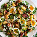 A new essential spring side dish: crispy potatoes with jammy eggs & bacon. It’s simple yet impressive, includes lots of herbs and lemon, and makes for such a good dish to entertain with.