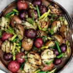 A simple side dish that screams “backyard cookout” – grilled potatoes & beans with cornichon vinaigrette. It’s a dish that works with just about any summertime outdoor feast!