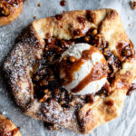 I’d say it isn’t fall without an apple galette! Flaky homemade dough folded over sweet cinnamon apples and baked until bubbling & golden. Drizzled with a sticky vanilla pecan caramel sauce! Absolutely delicious.