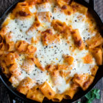 This was insanely good. I made it in a 9×13 baking pan and made the recipe quicker by roasting the tomatoes at 475 for about 20 mins. The sauce is amazing and the amount of cheese is unreal. My family (minus one of us) looooves cheese and this was a hit.