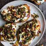 PrintCaramelized Brussels Sprout Toast with Burrata & Bacon