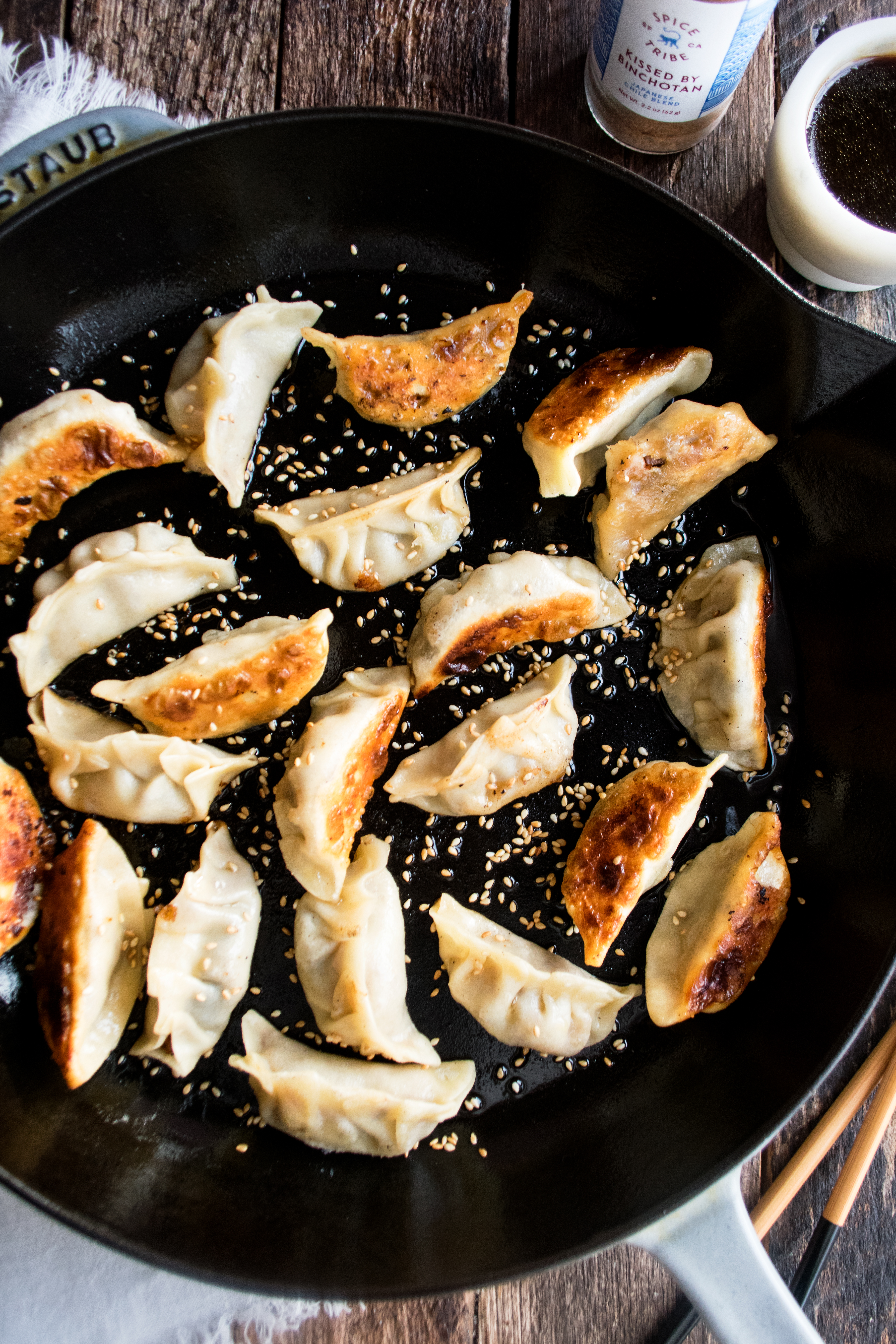 Cabbage & Mushroom Gyoza with Orange Sesame Dipping Sauce