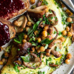 simple herb ricotta omelets topped with crispy chickpeas & pan-roasted mushrooms