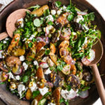 I absolutely love the idea of a hearty salad. Something a little bit more substantial than just greens and a dressing. And that’s exactly what I was going for with this roasted potato salad. A mix of greens and satisfying roasted potatoes. Sort of the best of both worlds. Tossed with lots of fresh ingredients and flavor to keep things really exciting.