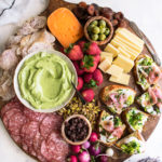 We’re talking about the ultimate spring grazing board today, and I could not be more excited! If you love to pick and graze all night long, this board is for you. It’s got all of the components of a good cheese and charcuterie spread, plus two fun springtime snack recipes: a vibrant avocado dip and asparagus prosciutto toast! Perfect for making nights at home just a little bit more special.