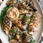 Sharing the best chicken recipe for a Memorial Day grill-out: garlicky grilled chicken with whipped paprika butter. The marinade of garlic, dill, salt, lemon, and oil really does all the work here…creating juicy grilled chicken that’s bursting with garlic flavor. The paprika butter is the special touch, hinted with just a bit of cayenne pepper, and slathered on top of the hot chicken right off the grill.