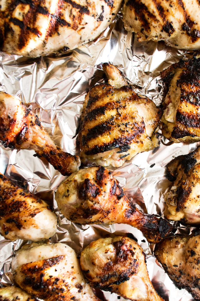 So all in all, this is a very simple recipe. We’re marinating the chicken, grilling it, and whipping up a smoky paprika butter to slather over top. You can use whatever cut of chicken is your favorite here. I’ve got a little bit of everything – two chicken breasts, four skin-on/bone-in thighs, and 6 skin-on/bone-in drumsticks. The chicken breasts that I used were really thick, so everything ended up cooking around the same time. You’ll want to be aware of the thickness and size of the chicken you buy, and may need to adjust the cook times as needed.