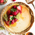 Pack the mixture into the bottom of a 9” springform pan, pressing it about 1 ½” inches up the sides. Press firmly to create an even crust. Chill the crust while you make the batter.