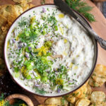 - Serve in a bowl with the dill potato chips (recipe below) on the side. Garnish with more fresh dill + chives and a drizzle of olive oil if you’d like.