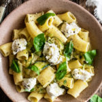 The best part about this is that the sauce essentially comes together in the exact time it takes to cook the pasta. You can use whatever pasta shape you like or have on hand. I love the large rigatoni noodles with the dollops of ricotta cheese, but a longer pasta like linguine would be great as well.