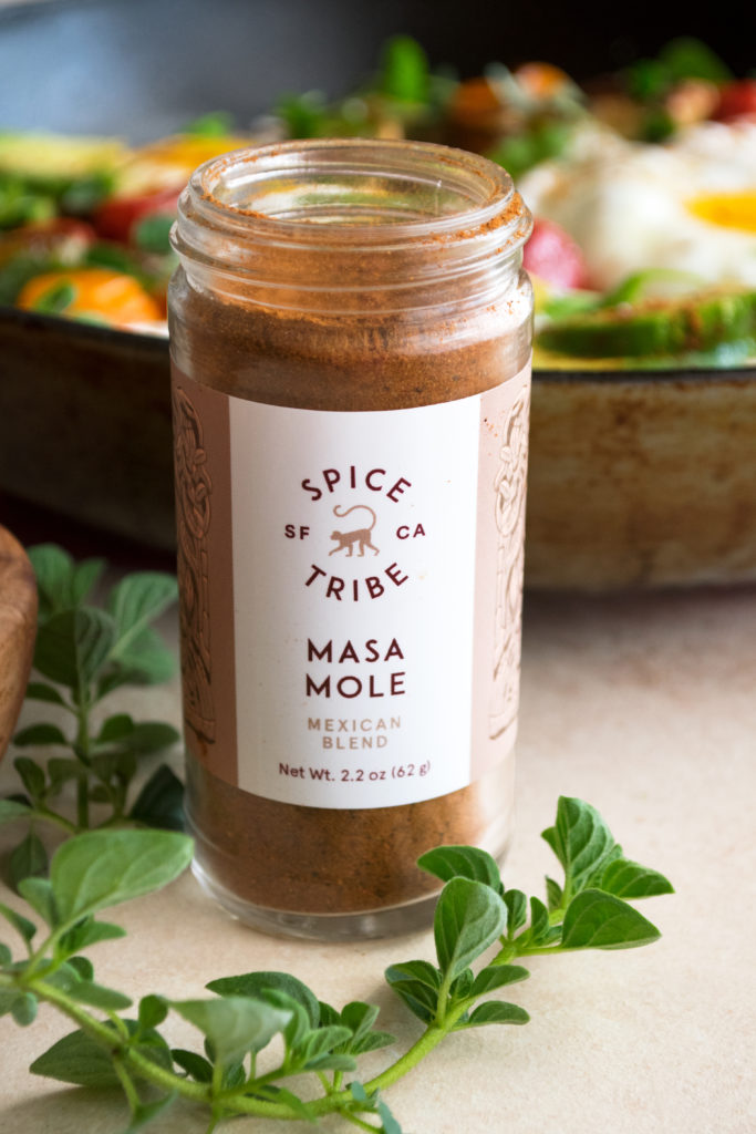 Spice Tribe spices always give me lots of inspiration and help to add SO much flavor to recipes without any effort. This Mexican potato hash incorporates Masa Mole, a blend of ancho, guajillo and chipotle chilies with cinnamon, allspice, garlic, onion, and oregano. All of their blends are ground fresh in small batches, so the flavors are always extremely bold and delicious.