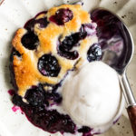Sharing my grandma’s blueberry slump recipe today, the simplest & most nostalgic summer dessert. Sweet, juicy blueberries baked until bubbling, with a simple vanilla batter on top that bakes up like a soft, rich cake. Served warm right out of the oven with vanilla ice cream alongside.