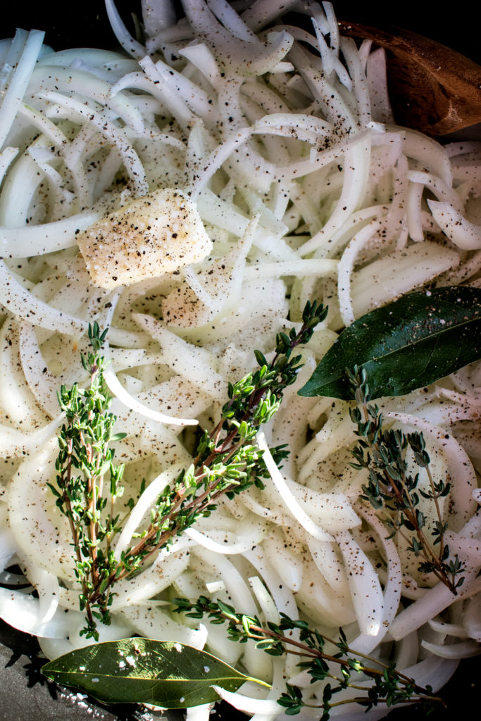 - 2 ½ lbs thinly sliced onions (approximately 4 large whole onions)