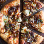I love creating new seasonal pizza combinations and this french onion pizza might just be my favorite yet. Last year, my winter pizza consisted of squash, kale, prosciutto, and creamy burrata. So delicious and definitely a must-make, but this year…we’re keeping things even simpler.