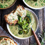 PrintRoasted Broccoli Soup with Melted Cheddar Croutons