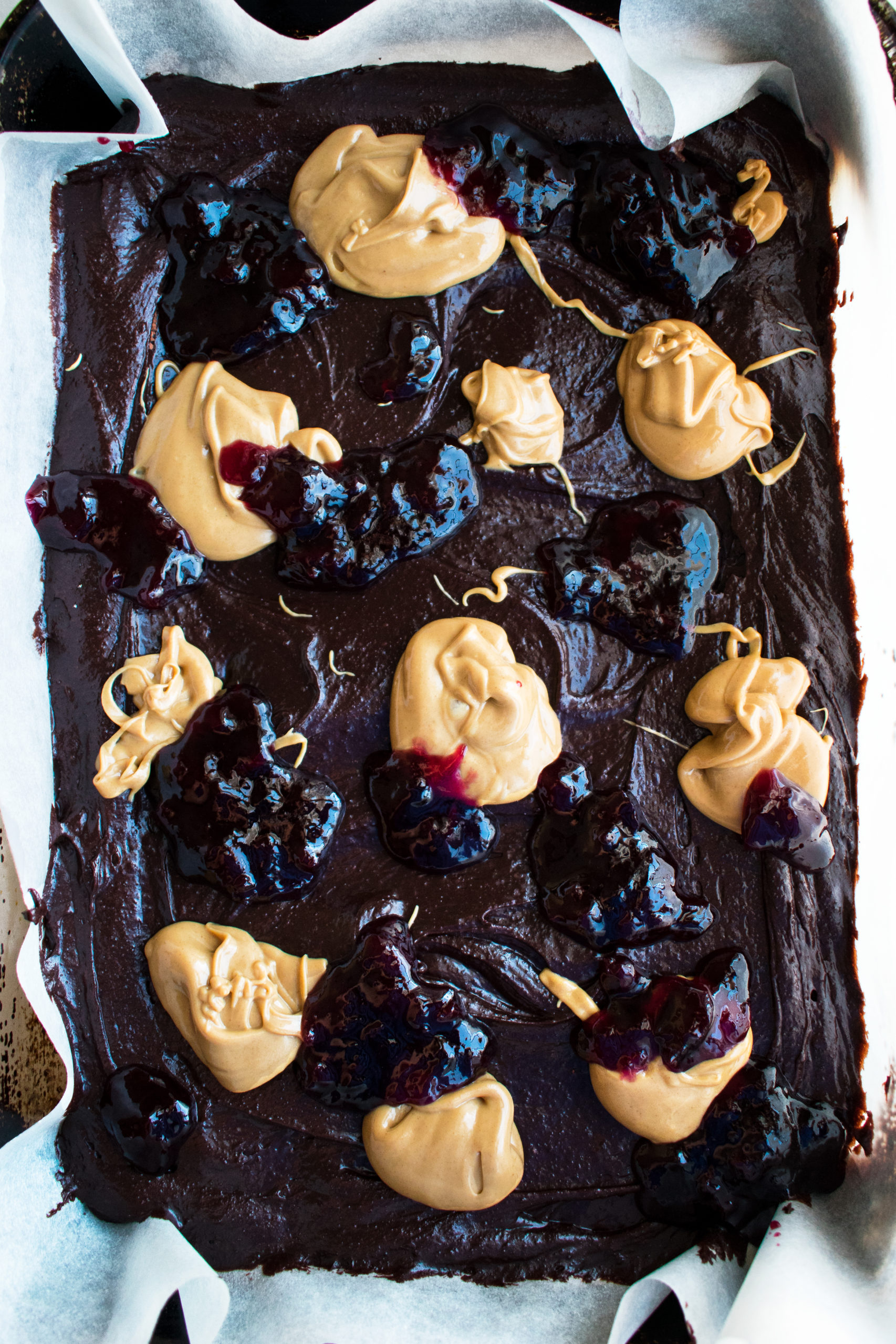 Peanut Butter and Jelly Brownies Posted on March 6, 2021March 7, 2021 by The Original Dish Peanut Butter and Jelly Brownies