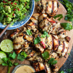 marinated grilled chicken served with a creamy, flavor-packed coconut sauce and refreshing snap pea salad