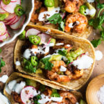 I’m really excited for you to try these spicy shrimp tacos! Make them any day of the week or invite some friends over for a taco night! Make a big batch of guacamole and maybe even elevate the meal with this festive mexican vegetable salad.